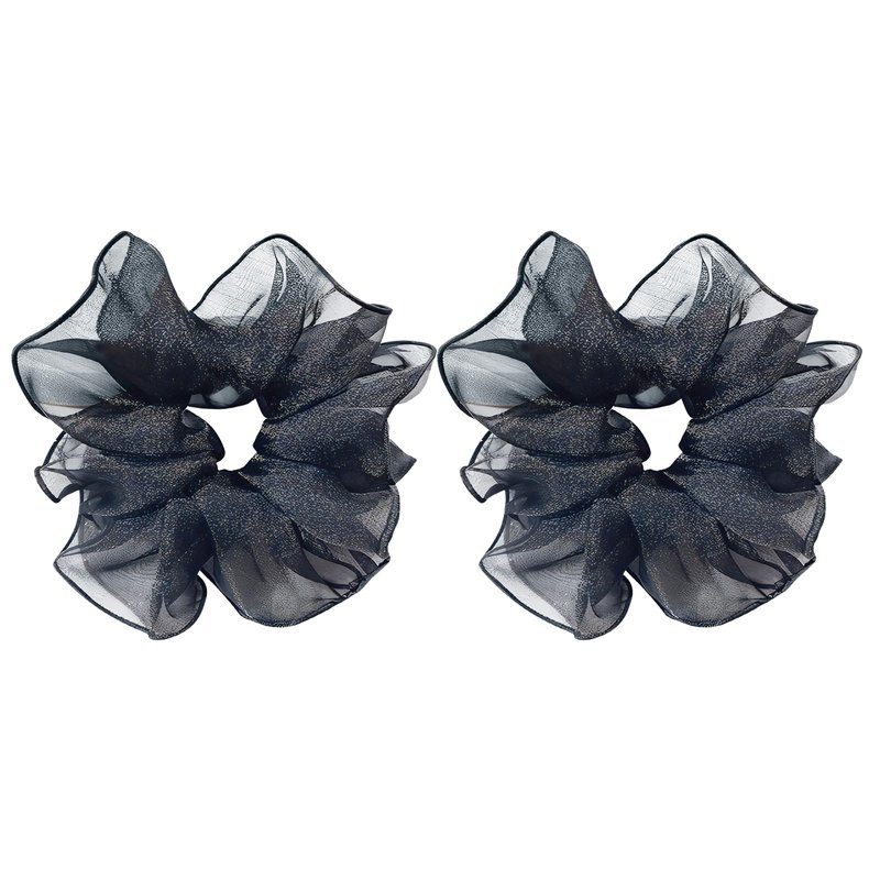 2 Pack Shiny Fluffy Dance Bun Organza Hair Scrunchies for Womens Bun Covers Headdress Ties Ponytail Bun Holders Hair Donut for Performance,Dance,Cheer,Party Favors (Black)