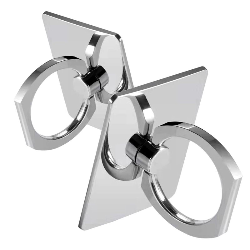 2 Pack Square Sparkling Cell Phone Ring Holder Stand,360 Degree Rotation and 180 DegreeAdjustable Finger Ring Kickstand with Polished Metal Phone Grip for Magnetic Car Mount-Silver