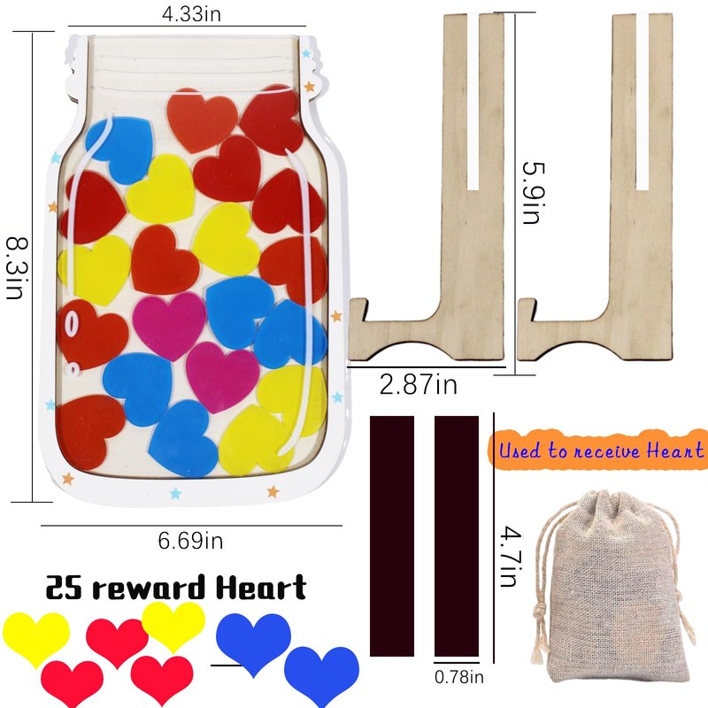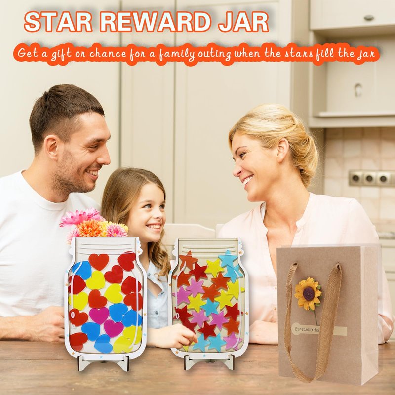 - 2-Piece Reward Jar Set – Includes 2 charming jars (star and heart designs) with 25 stars and 25 hearts, perfect for tracking achievements and good behavior.