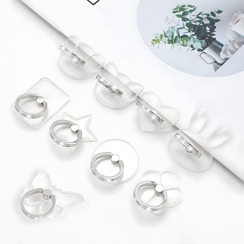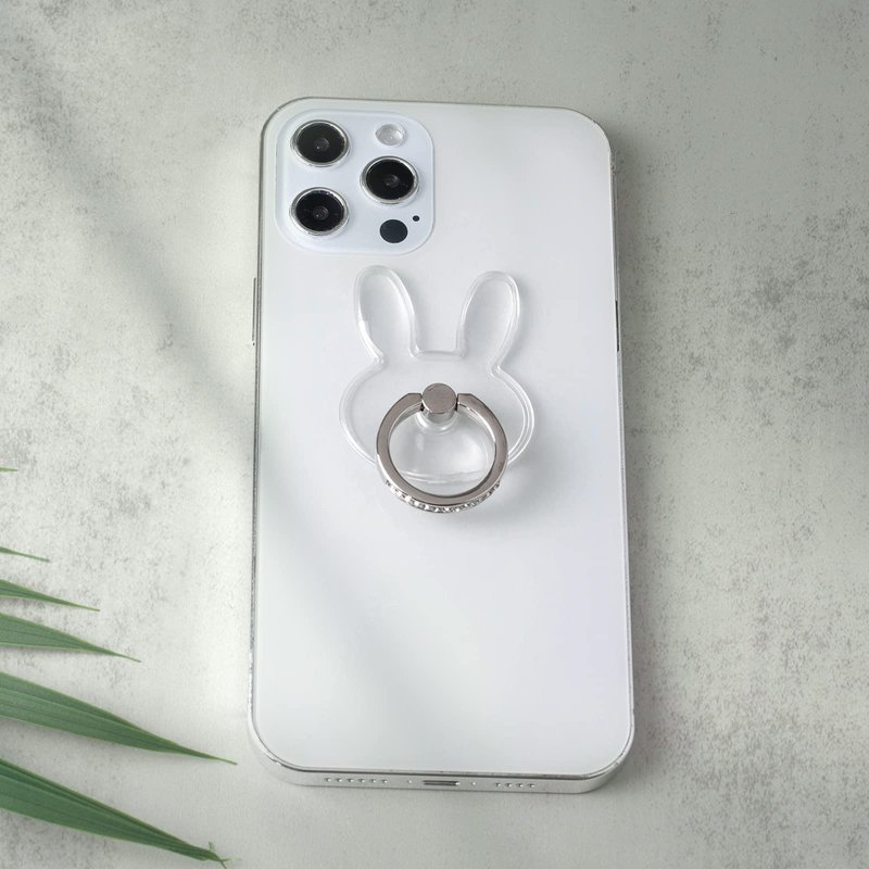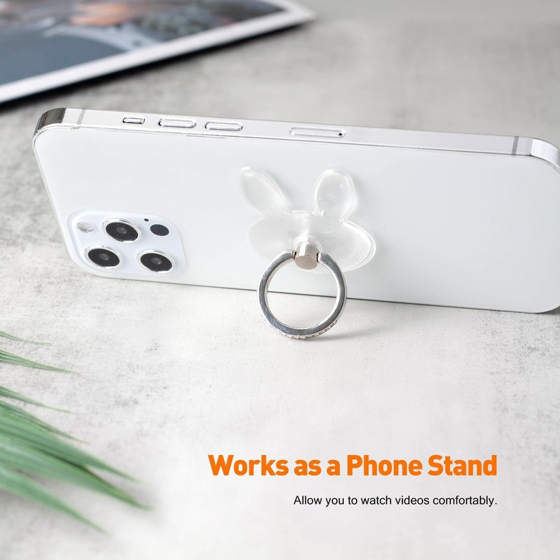 Transparent Rabbit Diamond Setting Cell Phone Ring Holder Stand,360 Degree Rotation and 180 Degree Adjustable Finger Ring Kickstand with Polished Electroplated Phone Grip
