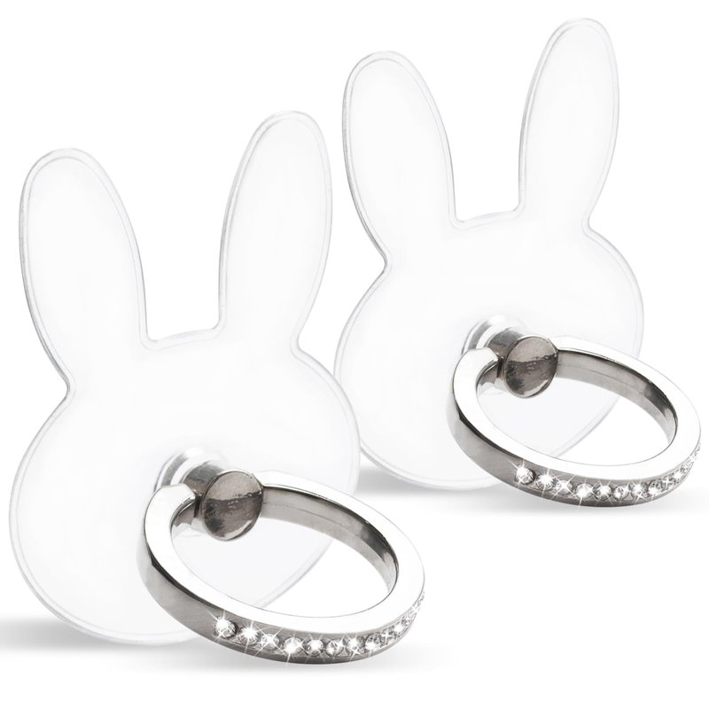 [2 Pack] Transparent Diamond Setting Cell Phone Ring Holder Stand,360 Degree Rotation and 180 Degree Adjustable Finger Ring Kickstand with Polished Electroplated Phone Grip (Bunny)