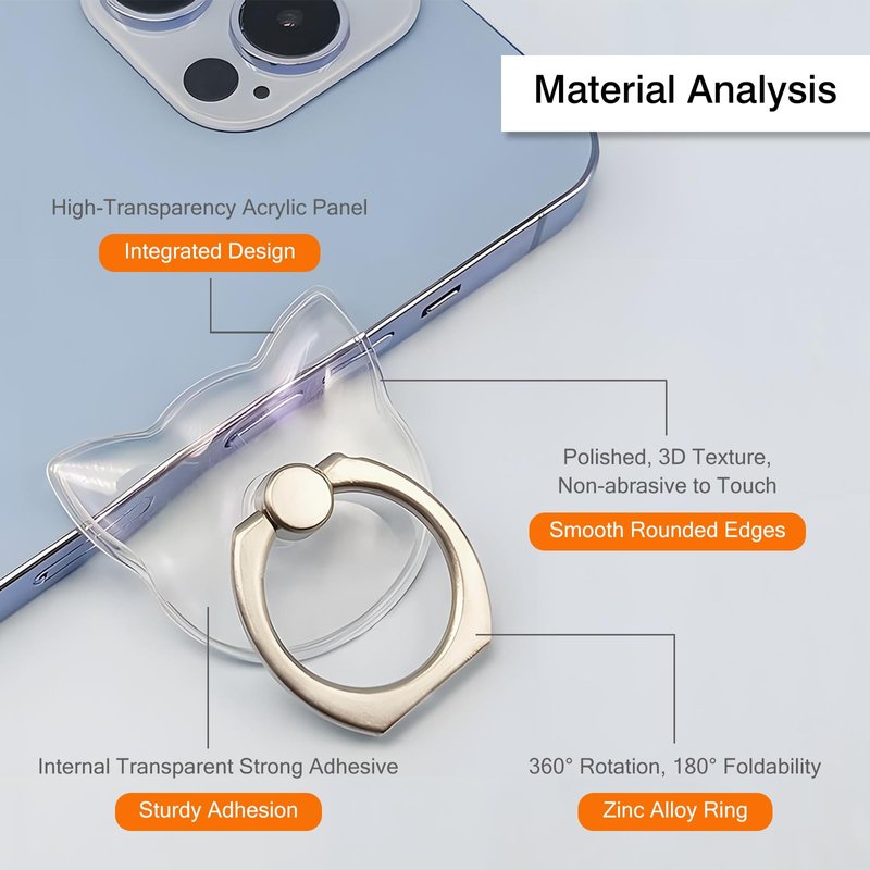 Transparent Cat's Head Finger Ring Cell Phone Ring Holder Stand,360 Degree Rotation and 180 Degree Adjustable Finger Ring Kickstand with Polished Electroplated Phone Grip