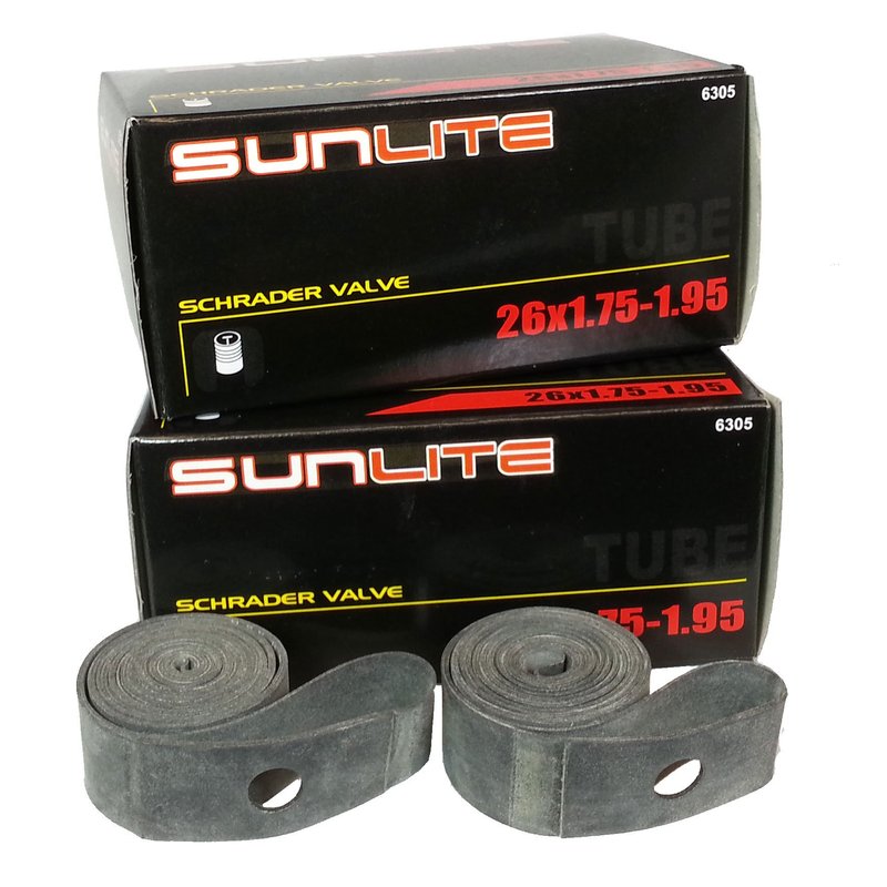 2 Pack - Tube & Rim Strips, 26 x 1.75-1.95 32mm Schrader Valve, Sunlite