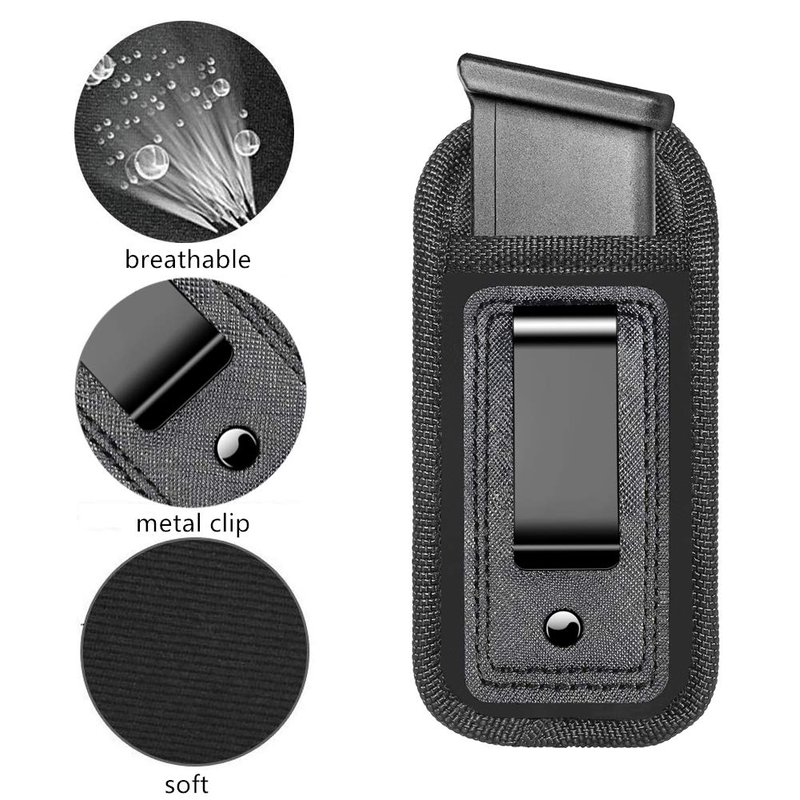 - Quick Draw And No Printing Guarantee - Universal holster allows you to draw the mag quickly and effectively. Also, you can walk, jump, work out, and even run with this IWB mag holster's sturdy metal belt clip without any movement of your clip. The sleek design of this holster allows you to carry concealed discreetly with no possibility of magazine showing through your pants (printing).