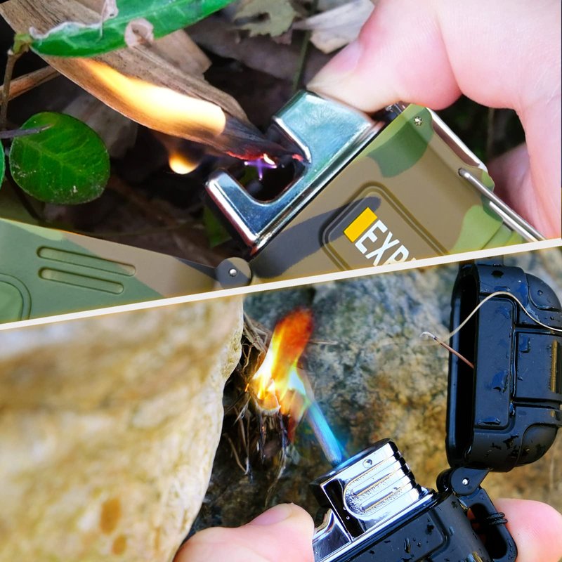 - 🌧【WATERPROOF & WINDPROOF】These 2 lighters are also built with metal-ring sealed cover and locking clasp. IP56 Waterproof System allows them work well in rainy day and windy day. The arc lighter's flameless design and the blue jet flame lighter both have a function of wind resistance. A necessary tactical gear for the outdoors.