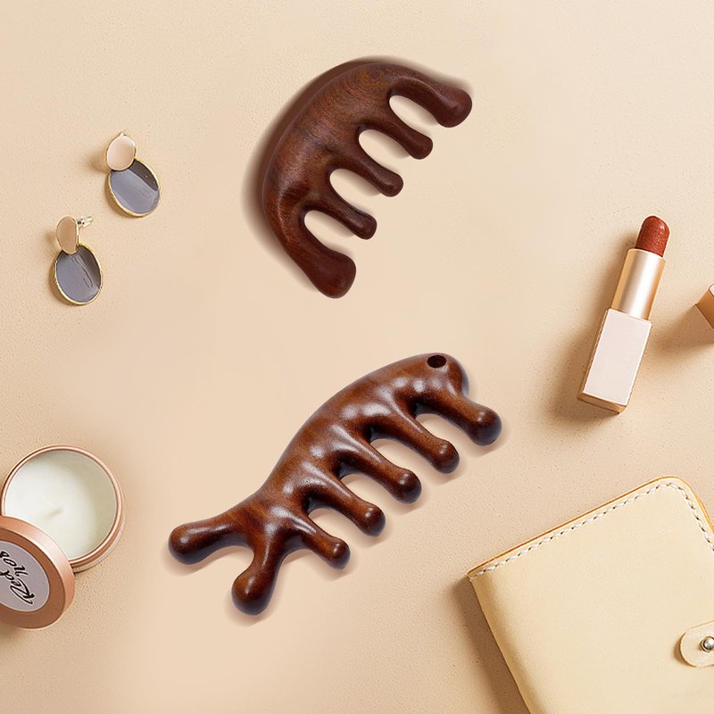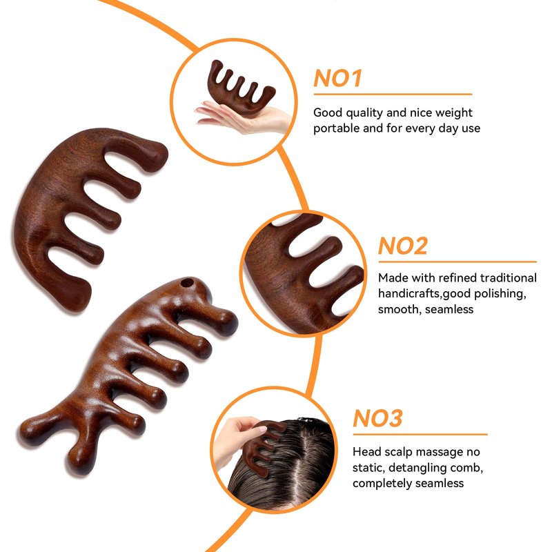 - Multi-purpose Massage Wood Comb: These are beautiful gua sha massage combs. The natural gold wire sandalwood comb works well on mostly for gua sha the head, neck, shoulders, hands, arms, calves, thighs and face massages, reducing your stress and energetic.