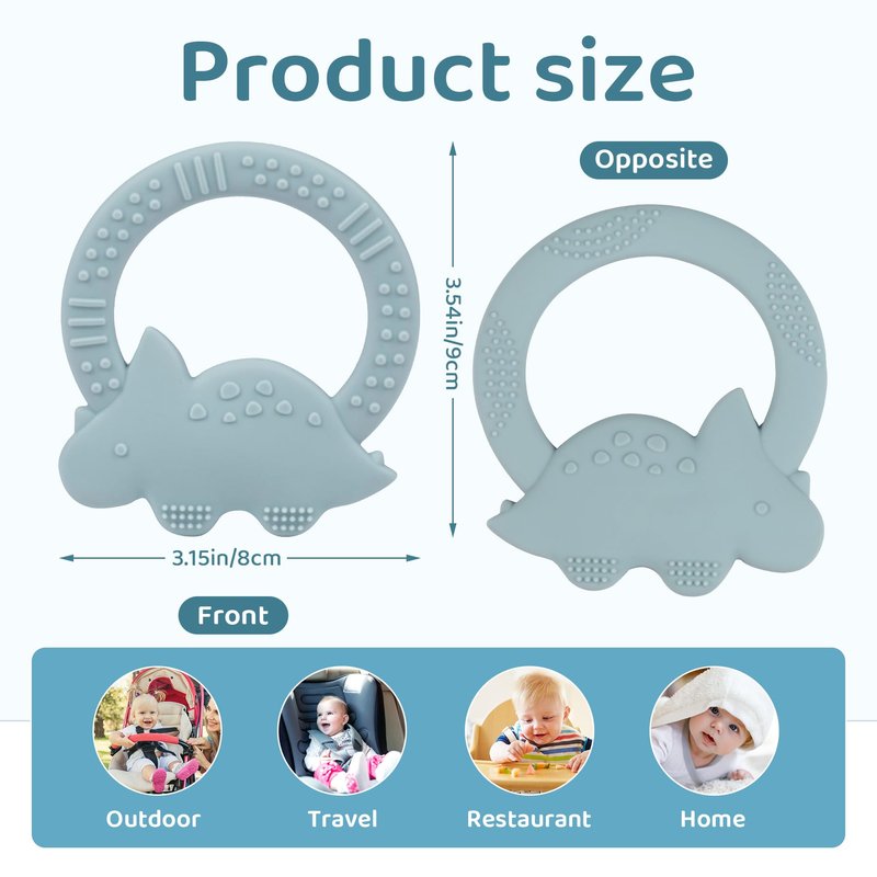 Soothe your baby's teething discomfort with our Dinosaur Shape Baby Teether Toy, crafted from premium silicone. This gentle baby teething toys features a cute dinosaur design, ergonomic grip, and multiple textured surfaces to provide varied chewing experiences. Easy to clean and durable,the baby teethers 6 to 12 months promotes comfortable feeling while offering hours of relief. Perfect for on-the-go, it's the ideal teething companion for your little one's journey.