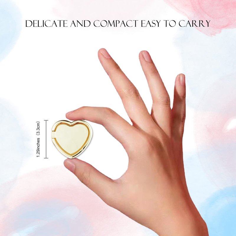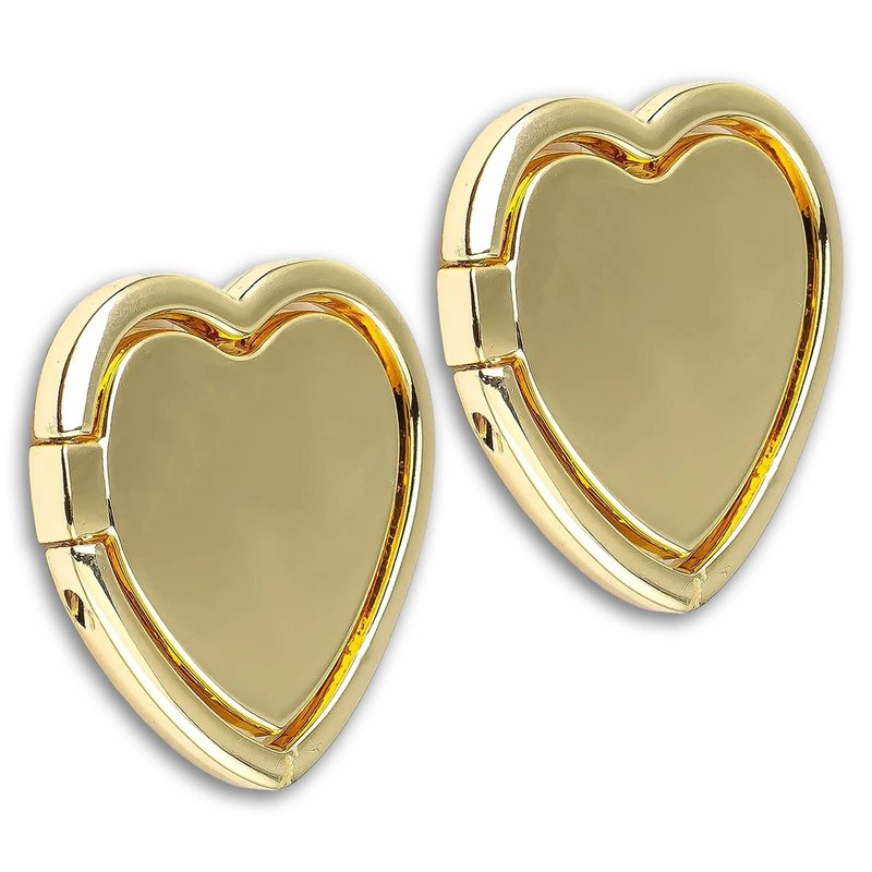 Love Heart Shaped Glossy Finish Cell Phone Ring Holder Stand, 2 Pack Finger Ring Kickstand with Polished Metal Phone Grip for Magnetic Car Mount, Smartphone Accessories