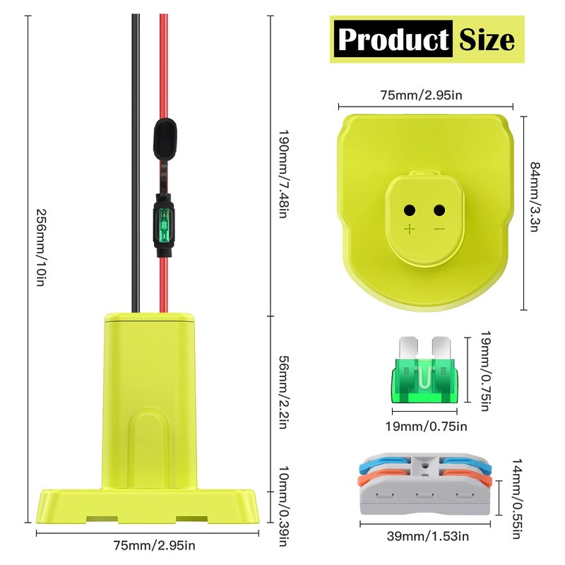 Battery adapter Compatible with Ryobi ONE+ 18-volt Li-ion batteries (P102, P103, P104, P105, P107, P108, P109, PBP002, PBP003, PBP004, PBP005, PBP006, P189, P190, P191, P192, P193, P194, P195, P197, BPL-1820G, BPL-1815, BPL-18152 etc.) Our power converter is well-made, snug fit your battery, install and lock your battery easily.