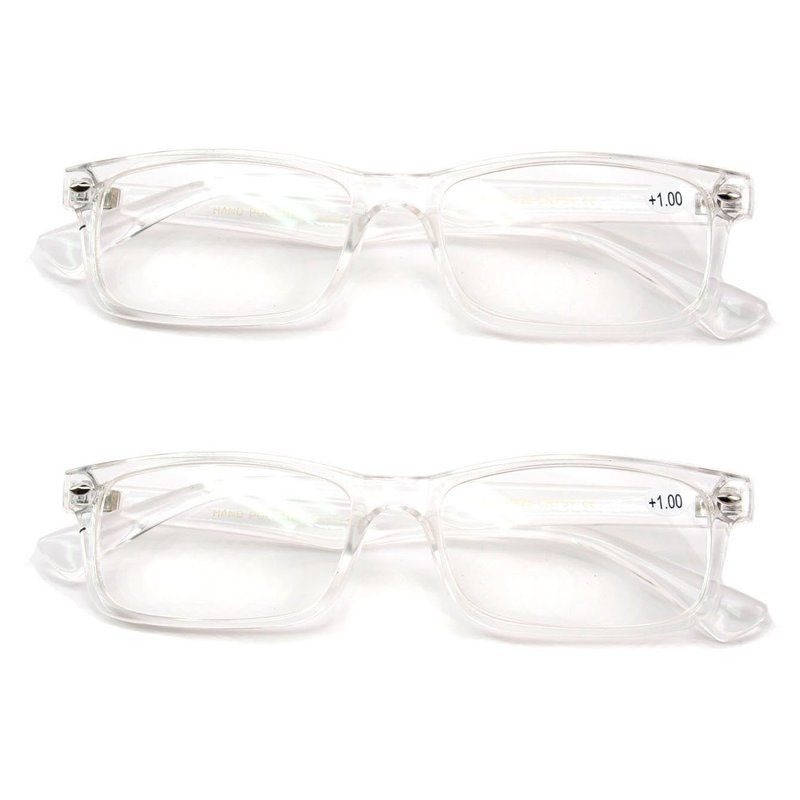 2 Pairs Casual Fashion Rectangular Reading Glasses - Stylish Simple Readers Magnification (Clear, 2.00)
