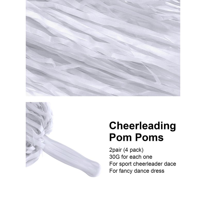 2 Pairs Plastic Cheerleader Cheerleading Pom Poms for Party Costume Fancy Dress Dance and Sport Party Dance (White)
