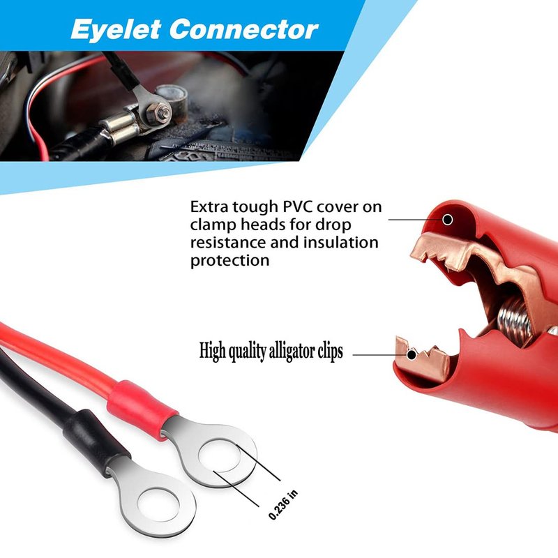 - 2 Pcs Alligator Clips Booster Jumper Cable 13 AWG 3.3FT/1m Extension ,0.23in/6mm Ring Tinned Copper Terminals,Material: 2.5 square 13 AWG copper wire