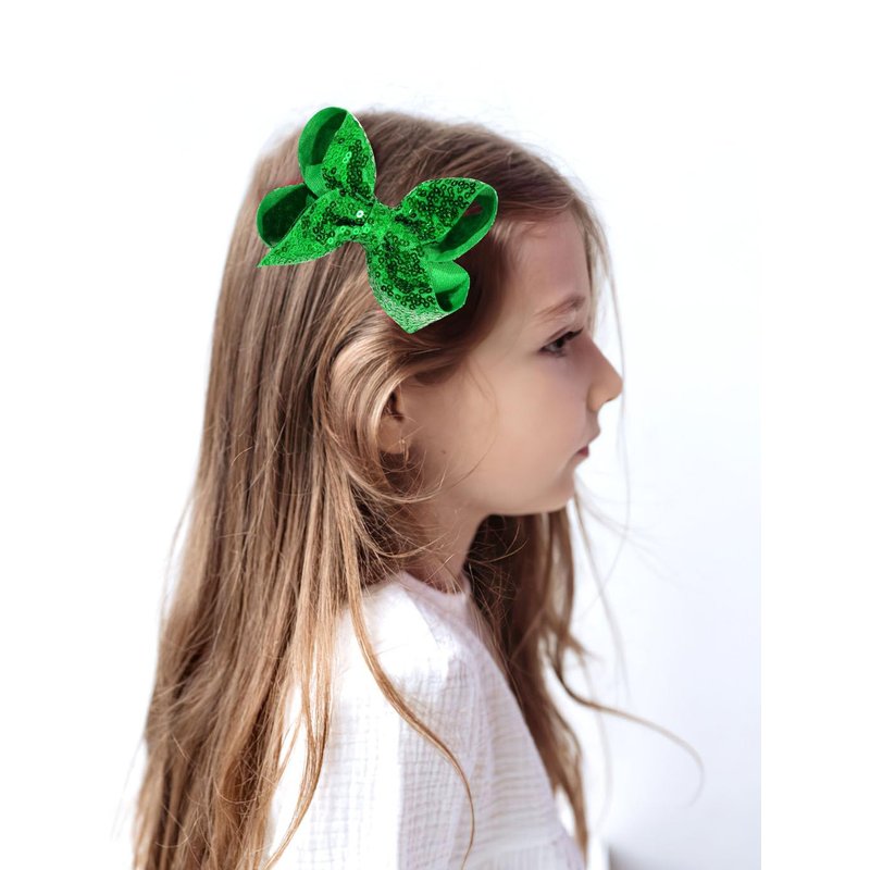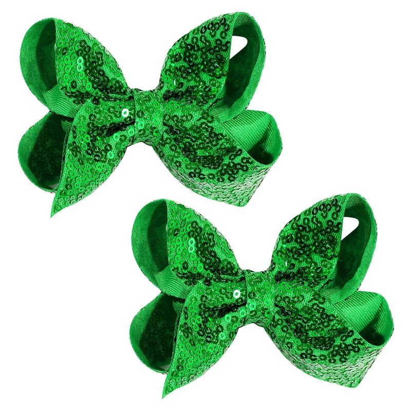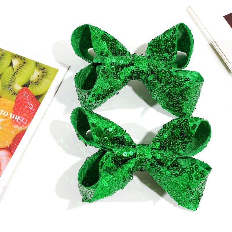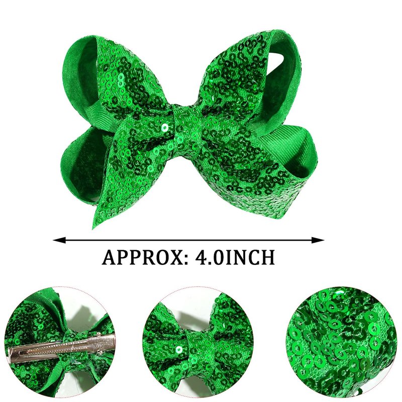 2 PCS 4 Inch Sequins Hair Bows Alligator Hair Clip Hair Barrettes Accessories for Women Teens Girls Kids (Green)