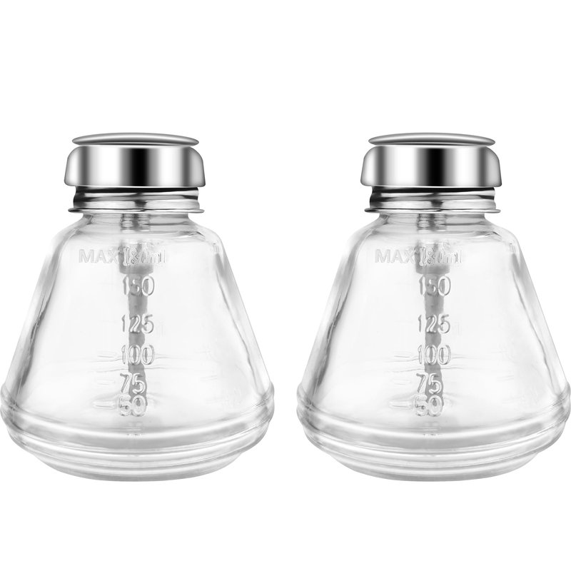 2 PCS 6 Oz Glass Pump Dispenser Bottle Push Down for Nail Polish Remover, Clear Refillable Dispenser Bottle Hand Pumping Press Container with Metal Flip Cover Pump Bottle Dispenser (A)