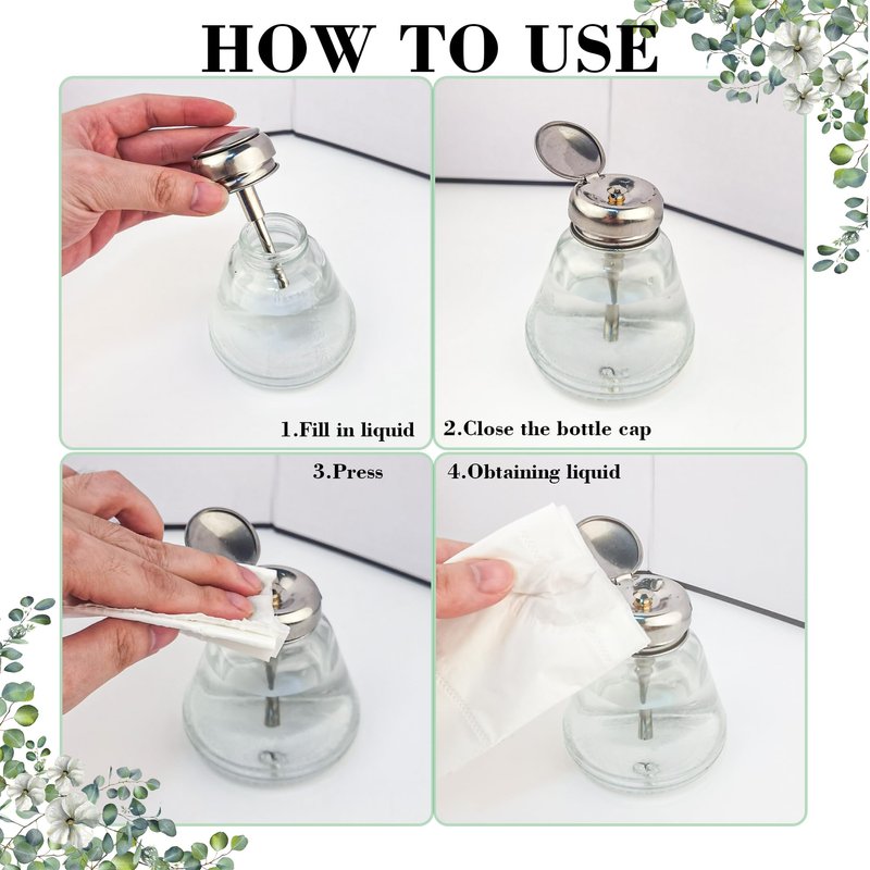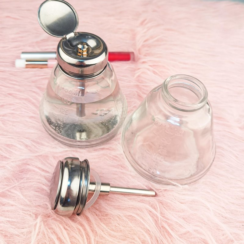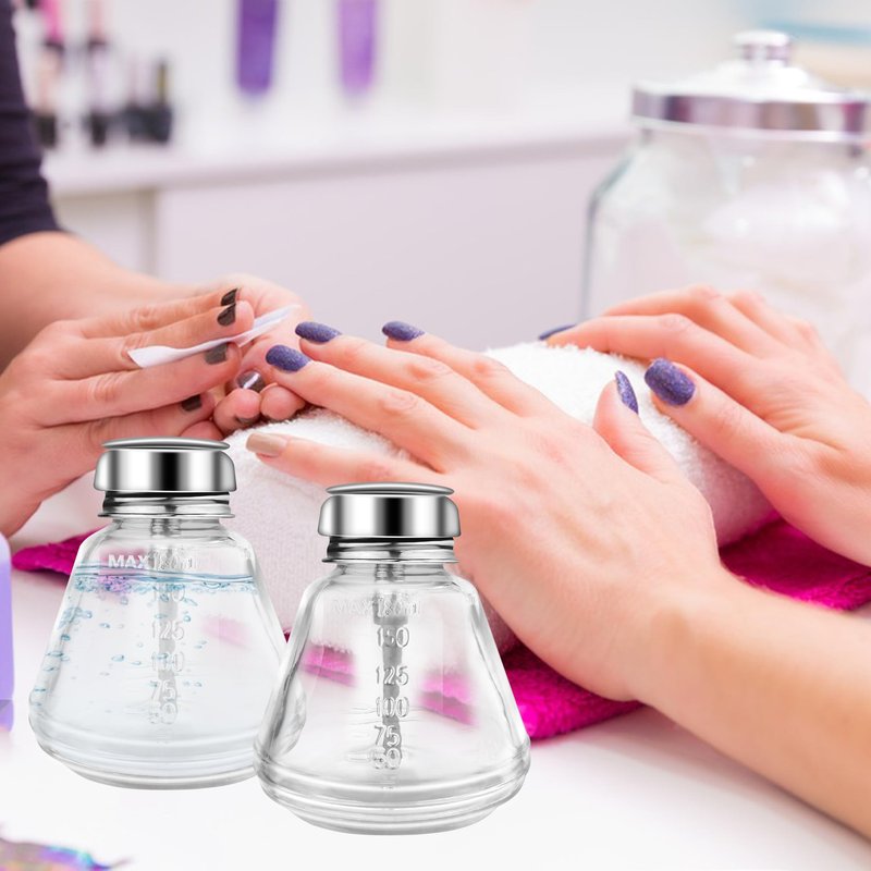 - 【Sturdy and Durable】This nail polish remover dispenser, designed for nail polish and makeup remover, features a durable construction made from thick glass, which is resistant to breakage. Its cap is crafted from stainless steel, ensuring exceptional durability.