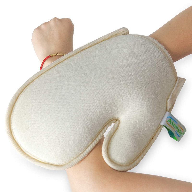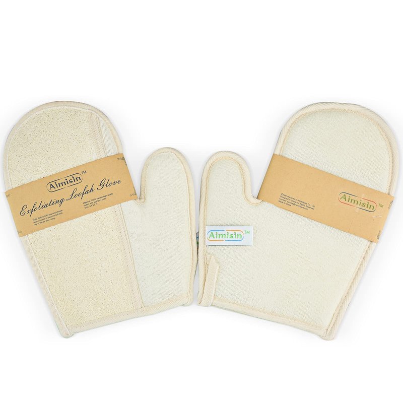 2 Pcs Aimisin Natural Loofah Gloves, Skin Cleansing Tool Loofah Body Cleaner Exfoliate Your Skin For Men and Women When Bath Spa and Shower Removing Dead Skin