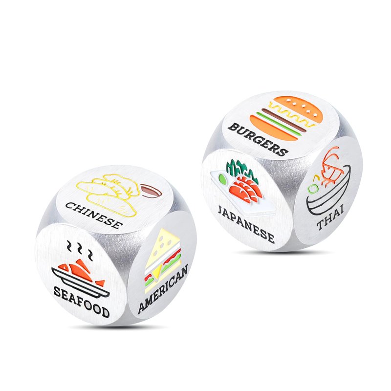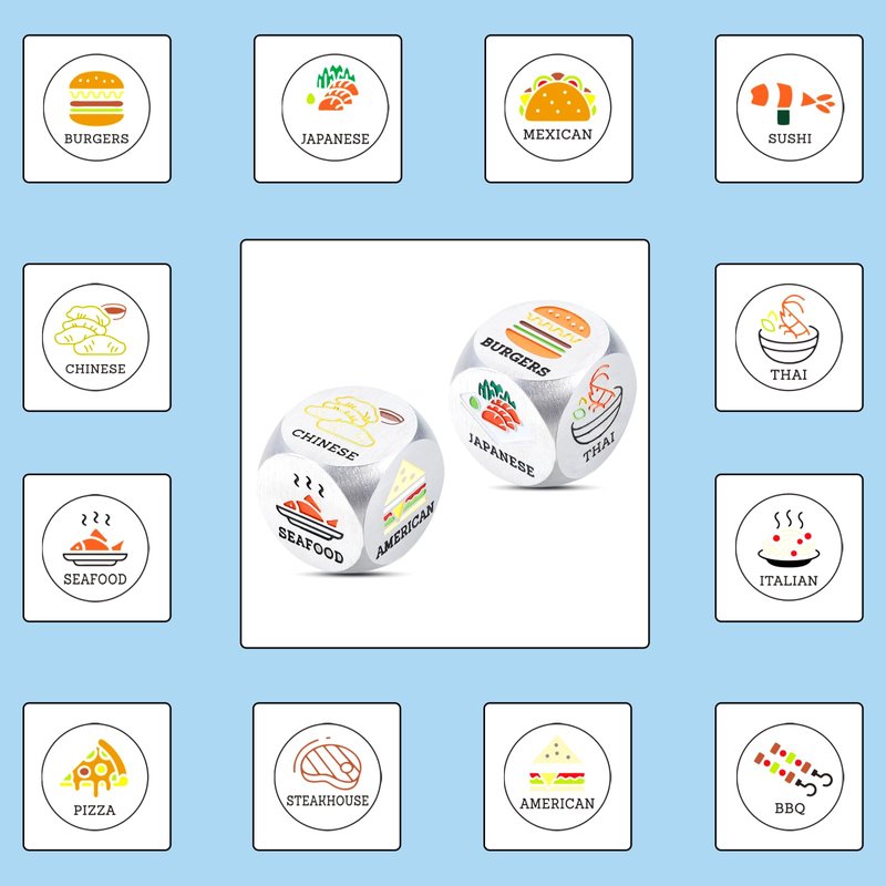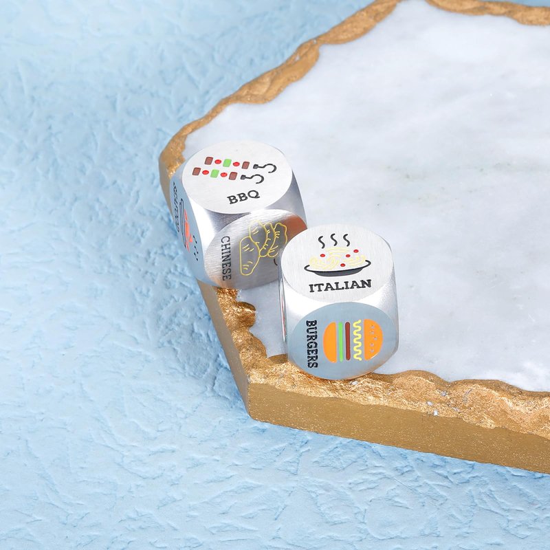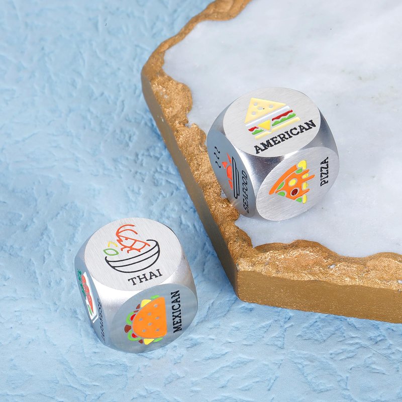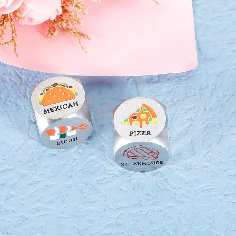 - ❥Funny Date Night Gifts for Couples: 2 Pieces Colorful food decision dice, each engraved with six different food choice which make it a gag funny valentines day gift for your awesome boyfriend girlfriend husband wife, couples, anniversary gifts for her him, engagement gifts for couples, wedding gifts for couple, anniversary gifts for her him, engagement gifts for couples, birthday gifts for girlfriend boyfriend, couple gifts, boyfriend gifts, girlfriend gifts, bridal shower gifts.