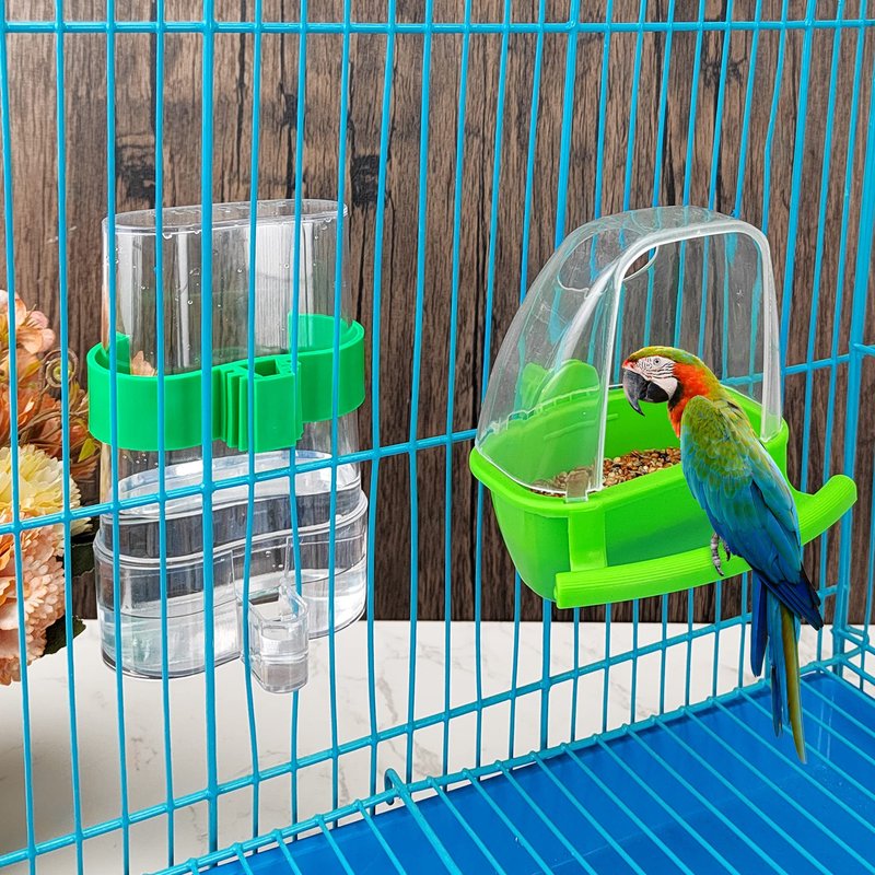 - 🦜【Premium Material】-- Our bird water dispenser is made of high-quality thick PVC material, safe and healthy. With a transparent design, allow you to observe the food and water balance and increase it in time. Easy to hang and use on the vertical railing installation. This water dispenser is fit for almost all of the cage.