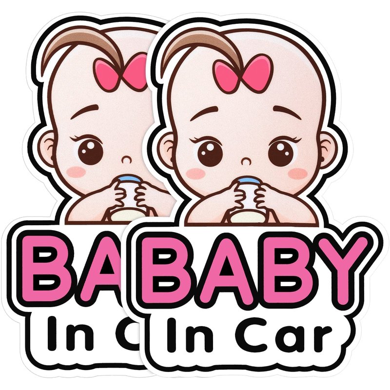2 Pcs Baby in Car Stickers Sign and Decal for Girl, Baby Car Sticker, Removable Safety Sticker Notice Board, Cute Baby Window Car Sticker, on Board Stickers (Girl Style)