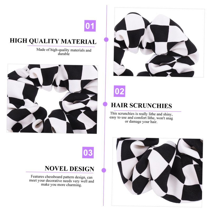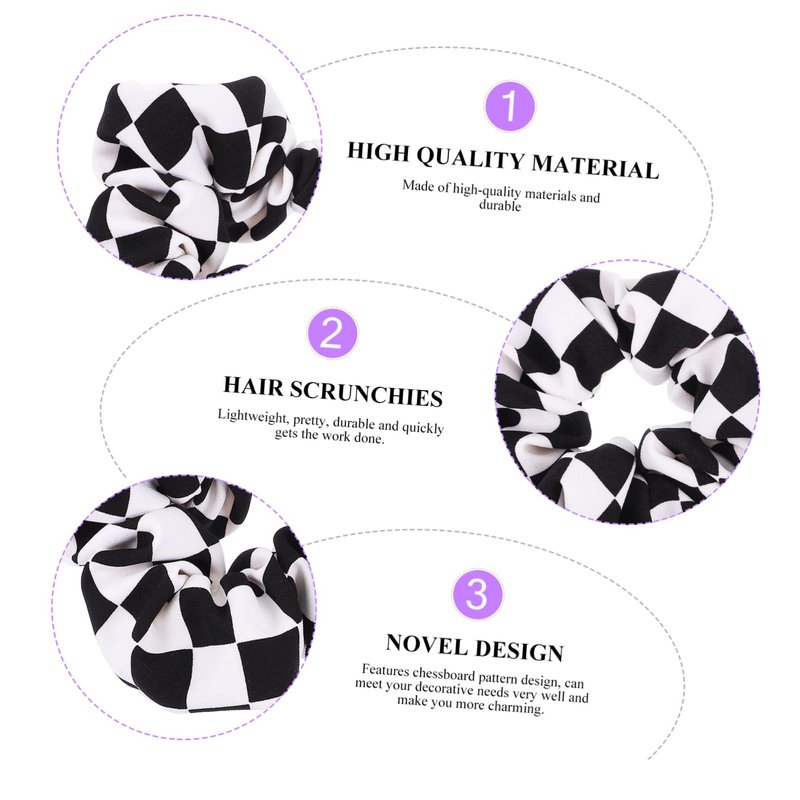 - Scrunchy Hair Ties: High- quality material: This black and white checkered hair circle is made of thick chiffon, with a comfortable texture and not easy to.