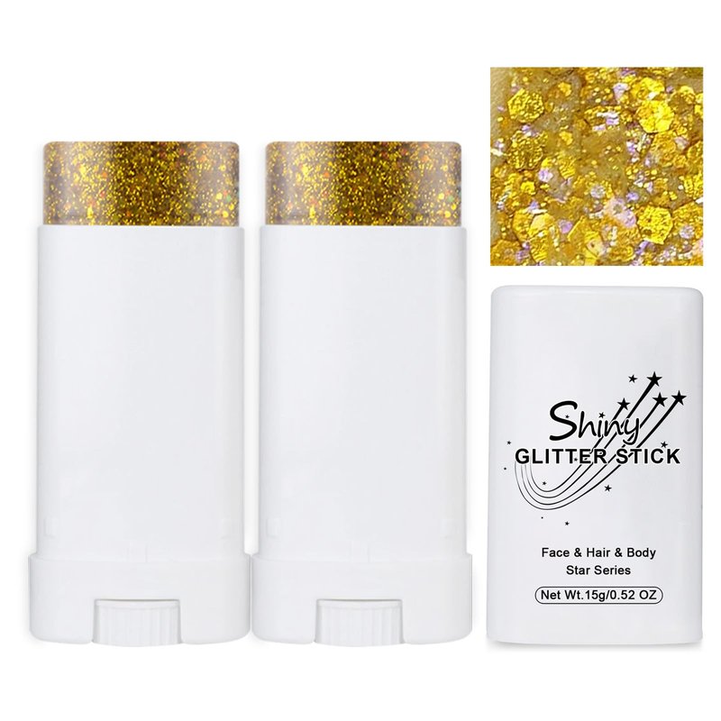 2 PCS Body Glitter Stick,Gold Body Glitter Stick for Singer Concerts,Waterproof Mermaid Face Glitter, Music Festival Chunky Glitter Makeup, Hair Glitter for Kids and Woman (04# Gold)