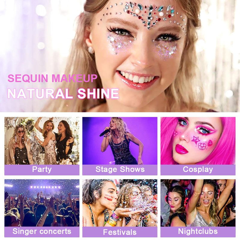 - Multi-purpose Use: Holographic glitter stick can be used on your face, body, hair, eyes, perfect for Rave accessories for music festivals, sexy singer concerts, children's parties, Rave festivals, school color parties, Christmas makeup, Halloween makeup or other glitter needs, also perfect for mermaid makeup