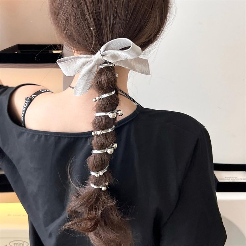 - 【Hair Bows Telephone Wire Hair Ties】You will get 2 pcs bows ponytail holders spiral hair ties,silver bows for hair pony tails hair ties can be paired with any sweet outfit to stand out and exude charm, making your outfit even more charming.