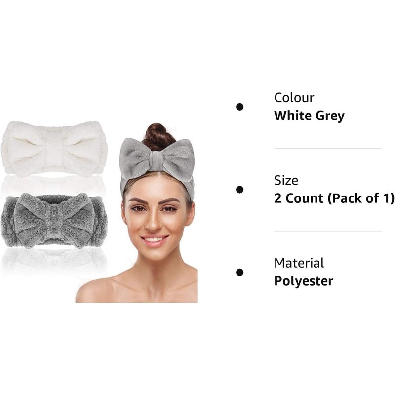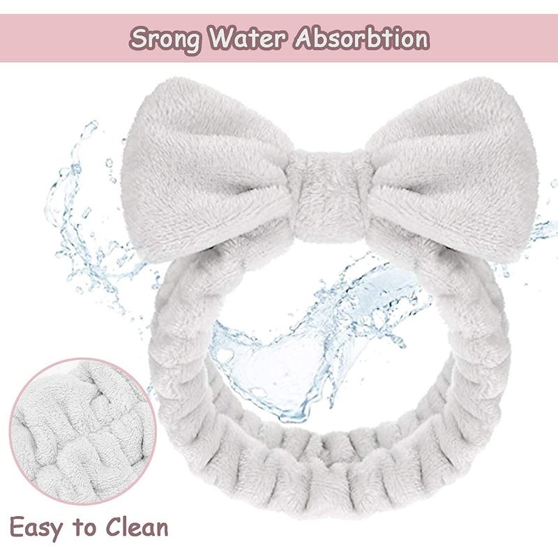 - 【Lovely Bowknot Design】The cute bowknot is decorated on the top of the makeup headband, keeping your hair neat and tidy and making you look extremely sweet and lovely at the same time,which is a necessary accessory for you when washing your face or having a shower.