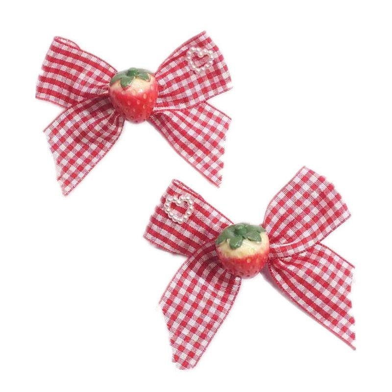 - The cherry strawberry bow hair clip can be applied to match your lovely dress and hairstyle. You can wear this cute lolita hair accessory with different Lolita dresses and all kinds of cute outfits.