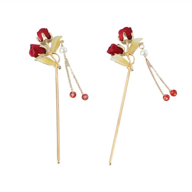 2 Pcs Chinese Style Rose Tassel Hair Stick Handmade Hanfu Traditional Style Exquisite Elegant Hair Forks Hairpins, Hair Accessories for Women Girls