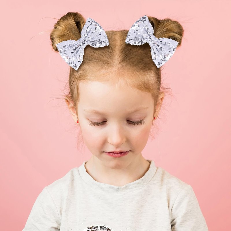 - Great Gift Idea- So kawaii bling silver sequins hairbow barrettes make a perfect Christmas,valentines day,happy new year,baby shower,birthday,back to school,wedding, 4th of july holiday gift for little ones,toddlers,teenagers,baby,flower girls,kids,children and women of all ages.