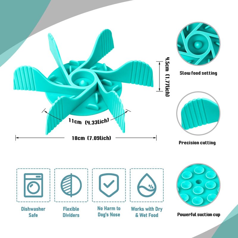 - 🐶Safe is necessary: Made of a food safe silicone material that is BPA, PVC, and phthalate free, our durable slow feeder dog bowl insert has 5 flexible silicone dividers with 4mm thick. It is soft enough for safety that can avoid scratching the dog mouth, noise and tougue. Suitable for wet dog food, dry dog food, and dog treats. We suggest that when the food has been eaten, remove and store dog bowl to slow down eating elsewhere to avoid chewing.