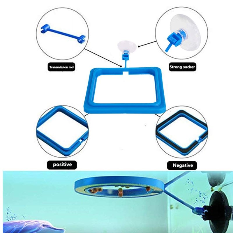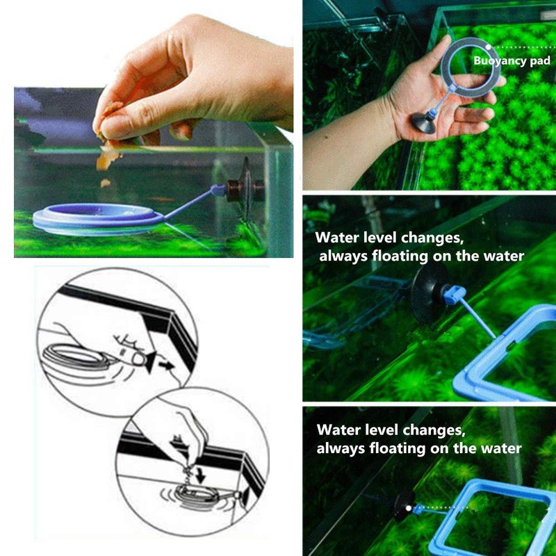 - 🐠【REASONABLE DESIGN】 - Suction cup suspension, Rotating device, Floating design, When the water level rises or falls, otating rod Repositioning with the water level, buoyant sponge is embedded in the bottom, Fish feeding ring Always keep floating above the water.