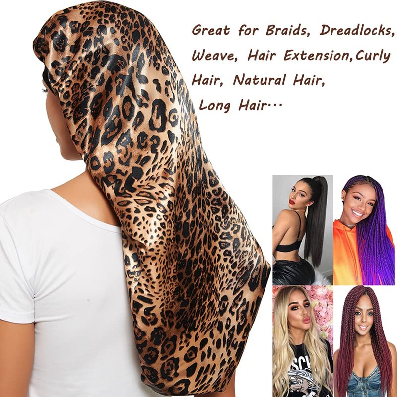 - 2 PCS INCLUDED - Black and Leopard. Large size to fit all head size, Length 27inch, No tight and no-slip, no matter how thick your hair. Great for holding natural hair, braids, weaves, rollers, hair clamps, long hair, and up-dos. Should be a perfect fit.
