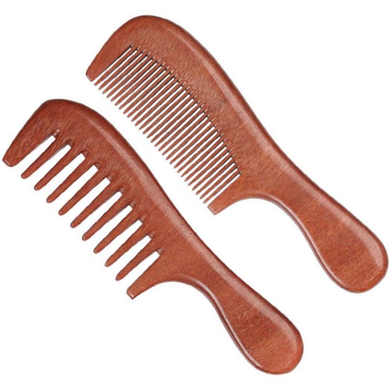 2 Pcs Hair Comb Set Wooden Wide Tooth Comb and Fine Tooth Comb for Women Men Kids, Anti-static Detangling Comb for Curly Fine Straight Wet Dry Hair, Natural Sandalwood Comb