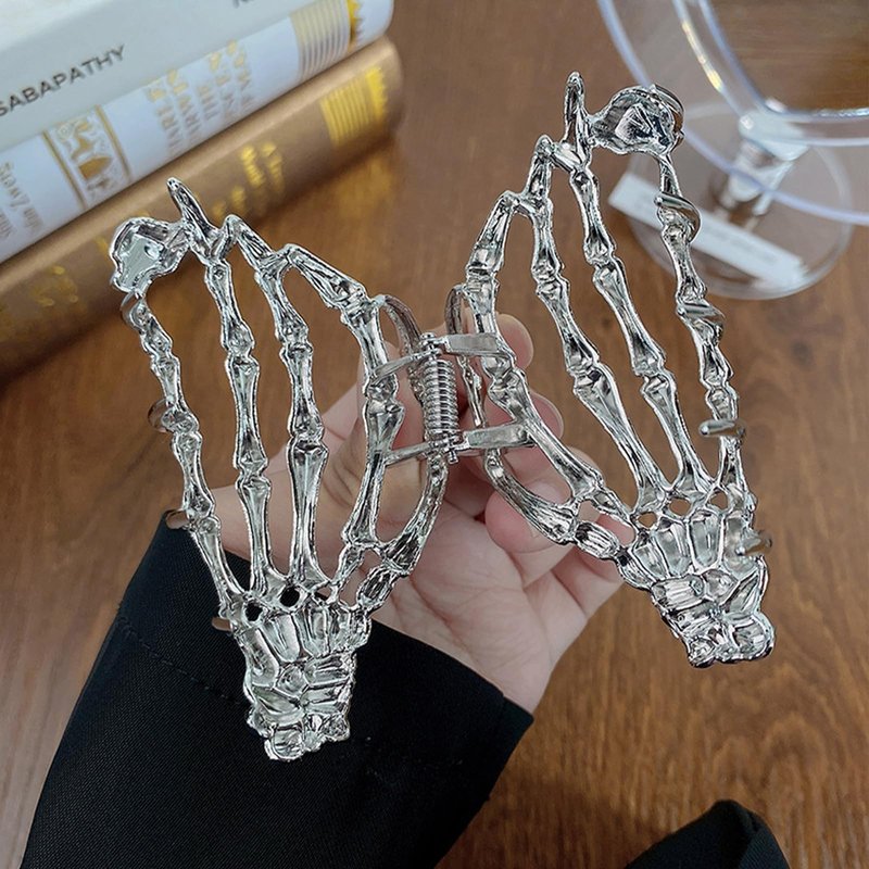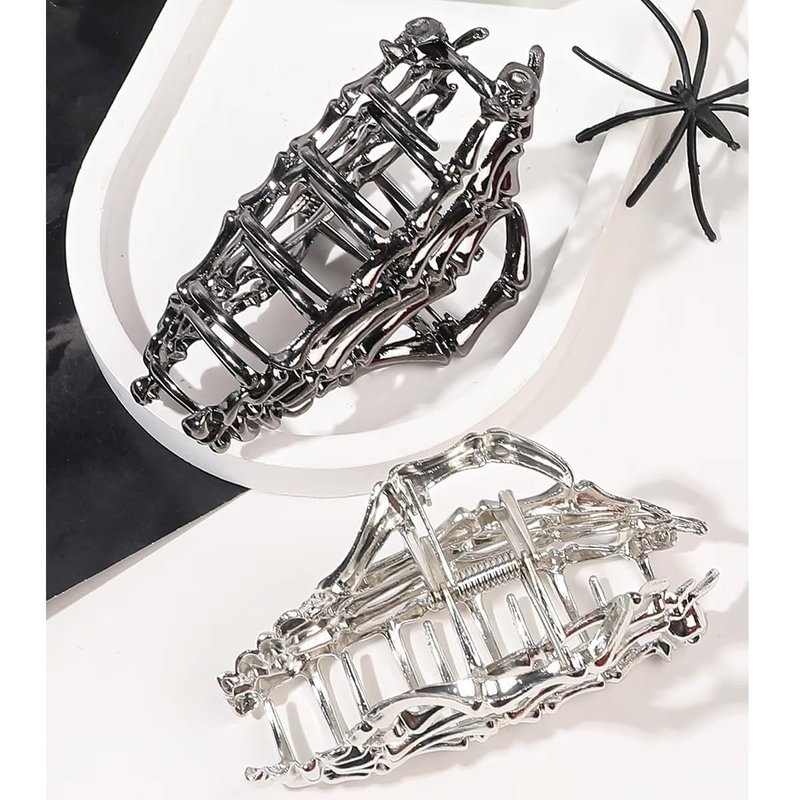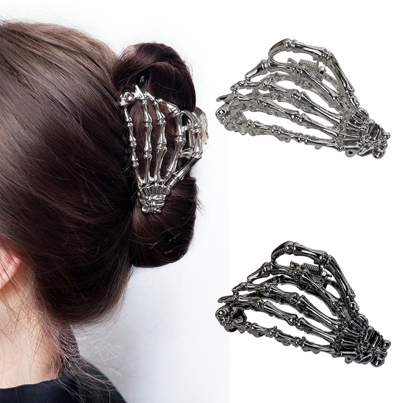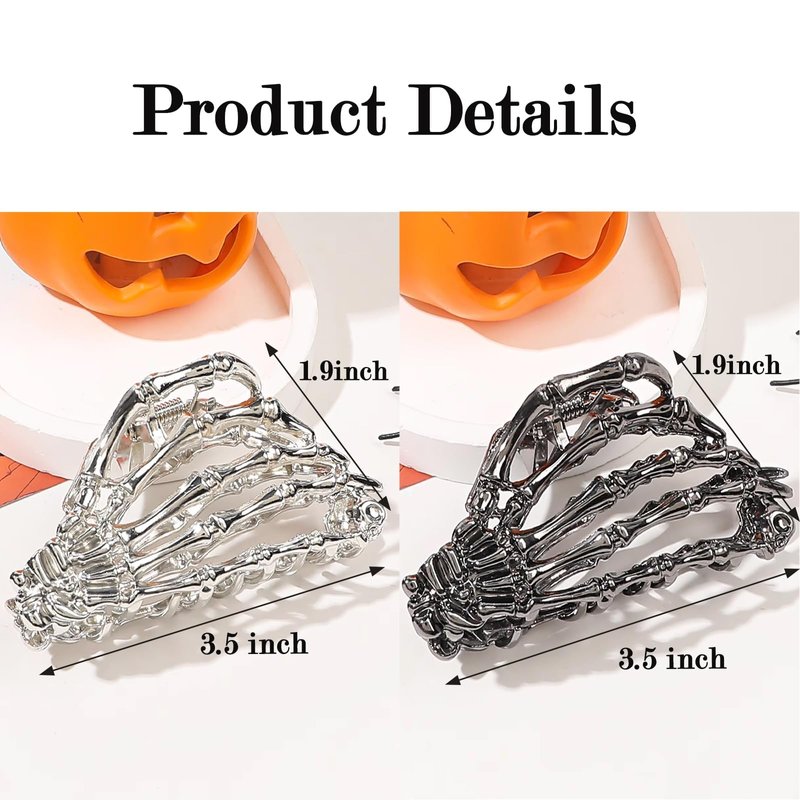 - [Quantity and Size] You will receive 2 pieces of metal hair claw clips, which includes silver and black. Gothic Hand Skeleton Shaped Design,which make you charming on Halloween party.
