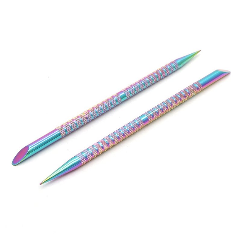 2 Pcs Holographic Stainless Steel Sticks Double Sided Nail Art and Cuticle Pusher Remover Manicure Pedicure Tool