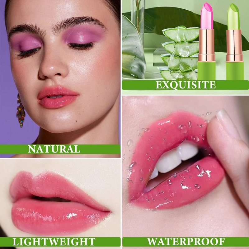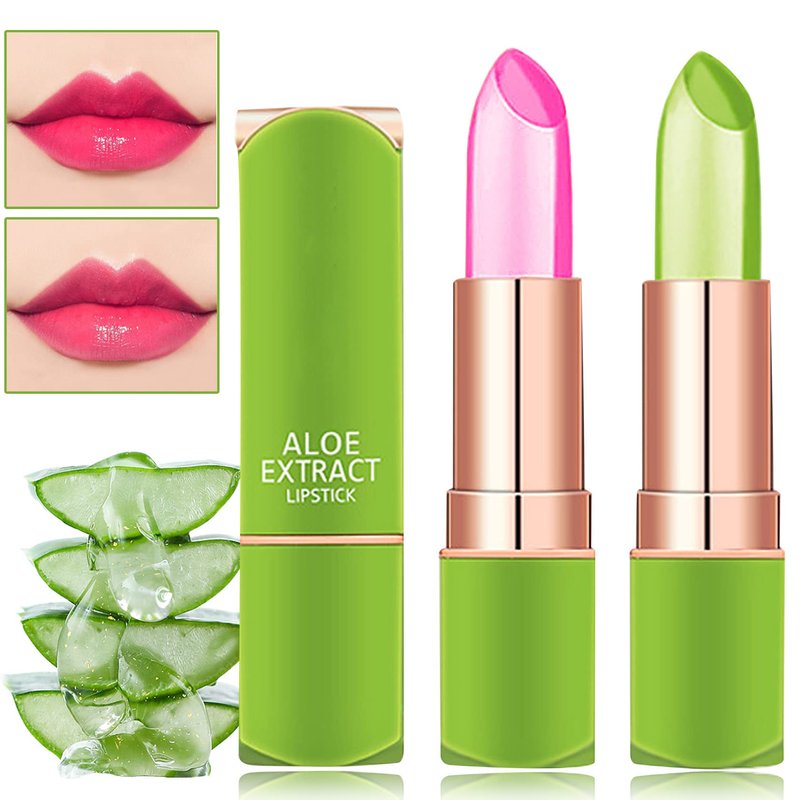 - 🌱【Aloe Vera Lipstick】Jelly crystal aloe vera lipstick is available in two beautiful colours. It has a light and silky texture that gives the lips a moisturised, glamorous tonal appearance and a softer, more comfortable finish after application.