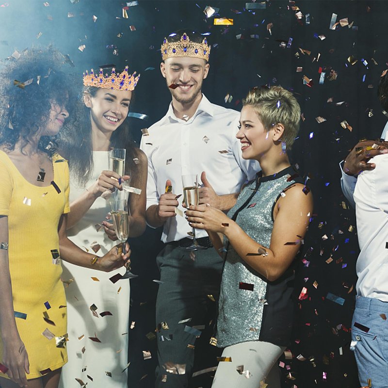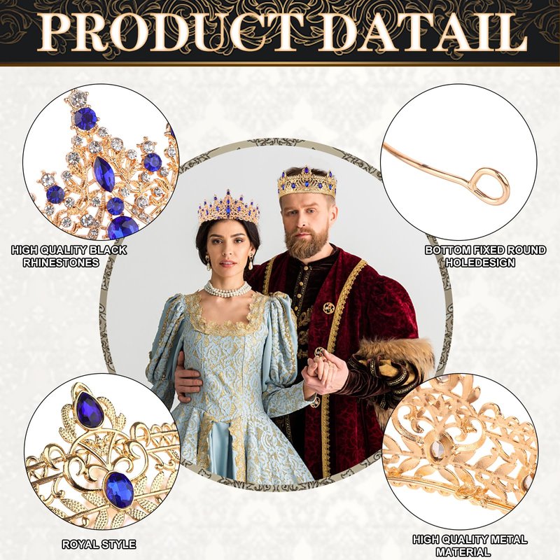 - Elegant Design: The king and queen crowns are set with classic black rhinestones in different sizes. Our crystal tiaras for women are a classic shape, and tiaras for men have a vintage design. Both are the best crowns for birthday decorations.