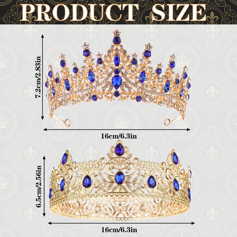- King and Queen Crowns: Package comes with 2 pieces crowns, 1 piece crystal king crown and 1 piece rhinestone crowns for women. Be the best princess of the night. Add a princess crown tiara to your party supplies. You can share another one of them with your lover.