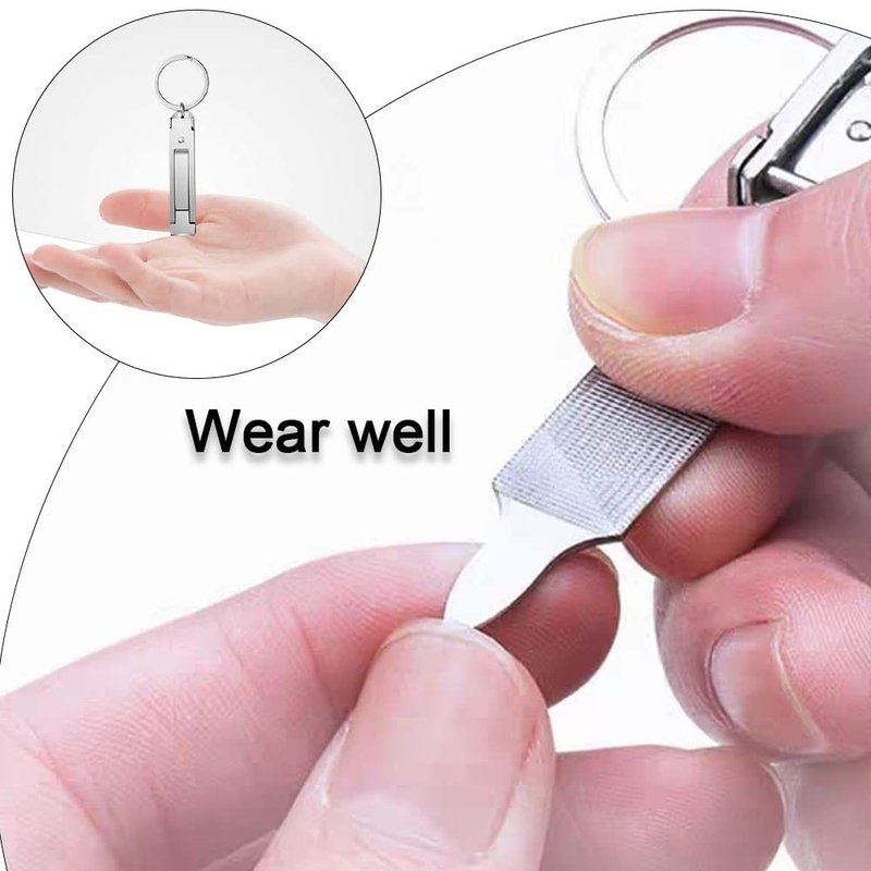 - 【Easy to Use】The flat nail clipper with file allows you to polish the edges of your nails after trimming with the built-in nail file to make the edges smooth. Featuring a splash-proof design, the back of the blade is designed with a small nail chip collection for catching clippings. With multiple functions to equip you for your daily adventures, including a nail clipper, nail file, nail cleaner (or screwdriver) and key ring.