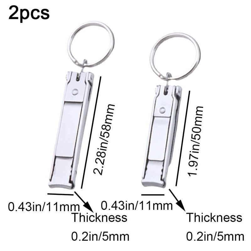 2 Pcs Multi Nail Clipper Ultra-Thin Portable Nail Cutter with Key Ring and Nail File Stainless Steel Foldable Manicure Set for Traveling, Home, Office
