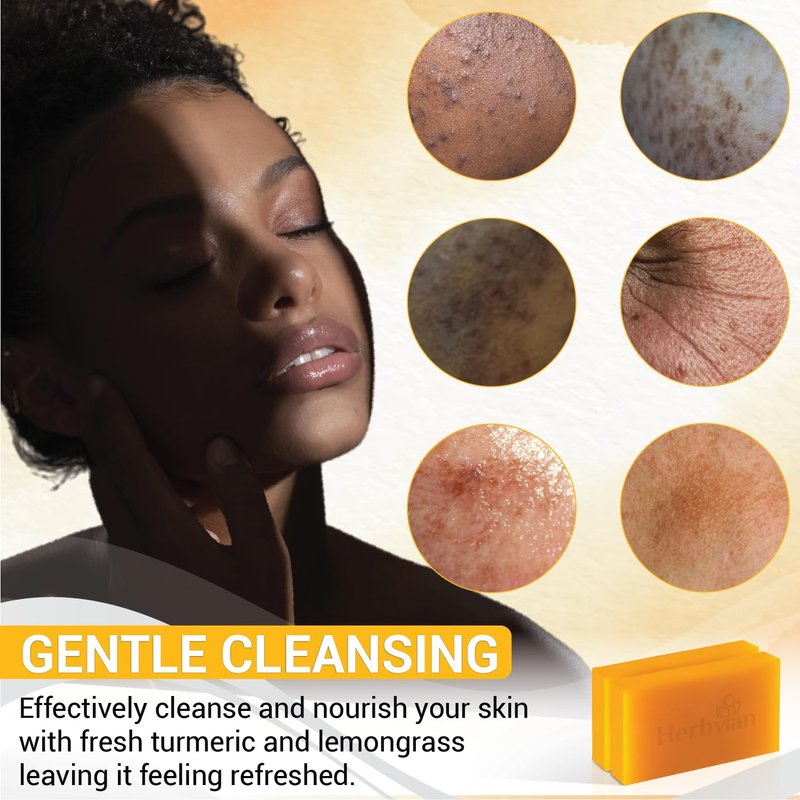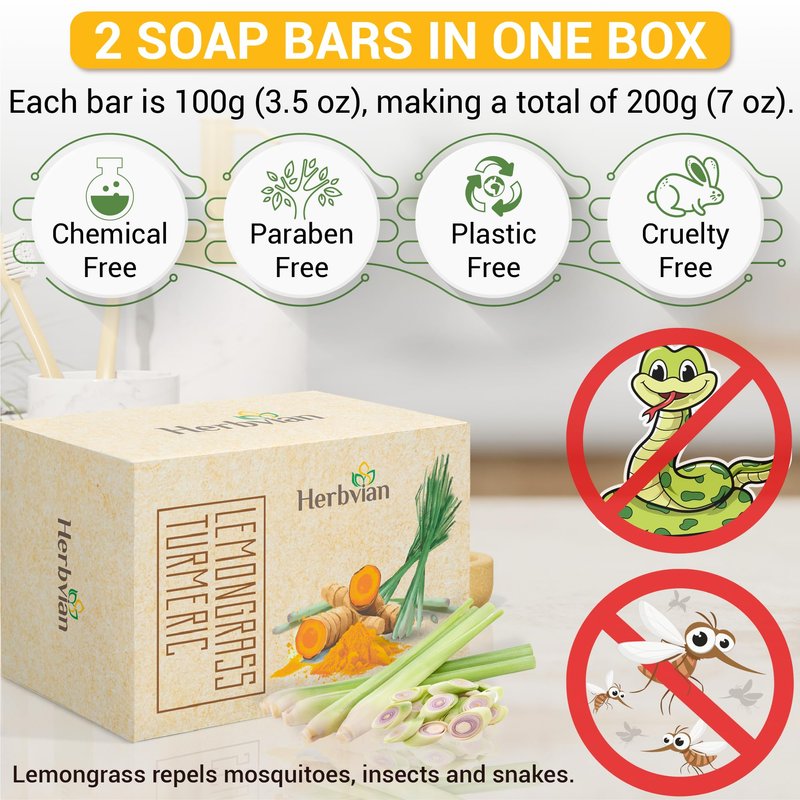 2 PCS Natural Vietnamese Turmeric & Lemongrass Soap Bar, Turmeric Soap For Face and Body, Back Acne Body Soap, Anti-Acne Cleansing Healthy Skin, Mosquito Repellent Soap, Bath Soap Bars