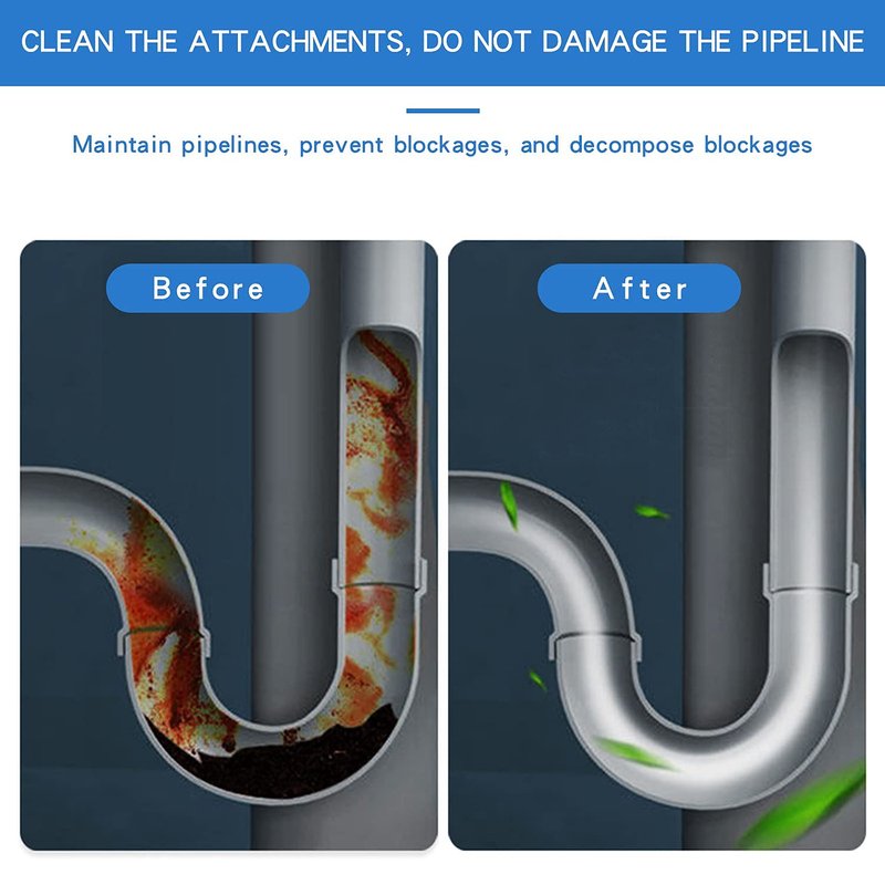 - Effectively prevent clogging drainage: 1 or 2 bottles of pipe dredge agent are poured into the main pipe.
