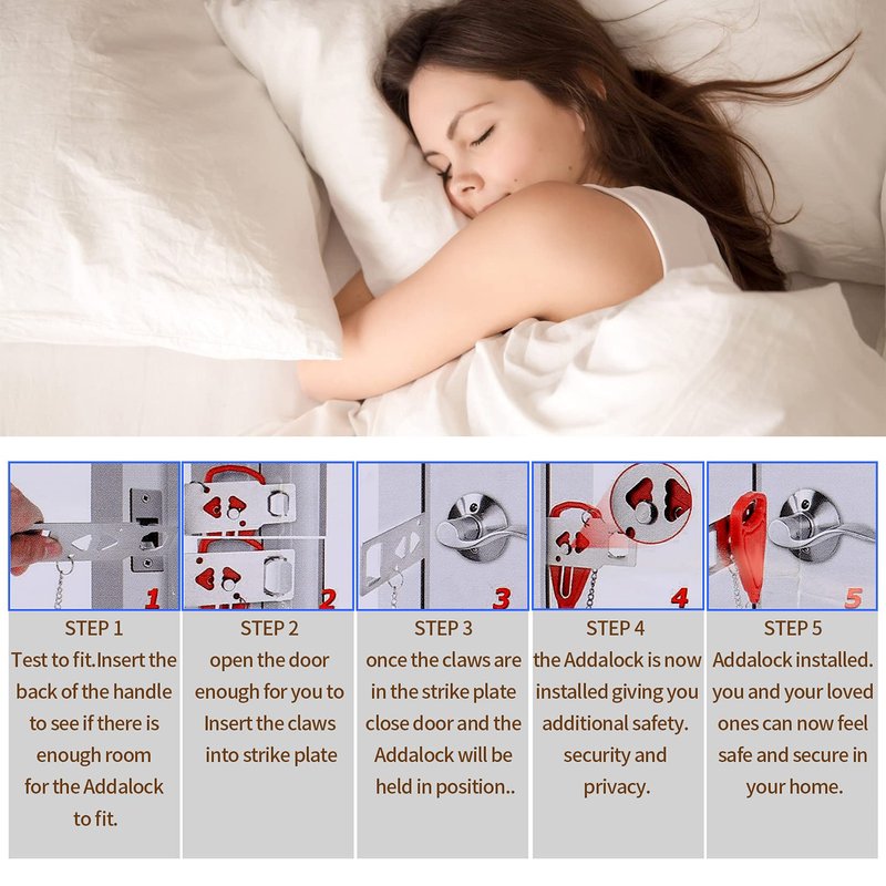 - Wide Applications: Perfect for motels, hotels, resorts, dormitories, apartment security, short-term rentals, bathrooms, bedrooms, etc. The door extra lock safety from inside provides security for travelers, singles, family mothers, college students, etc.