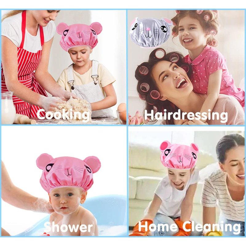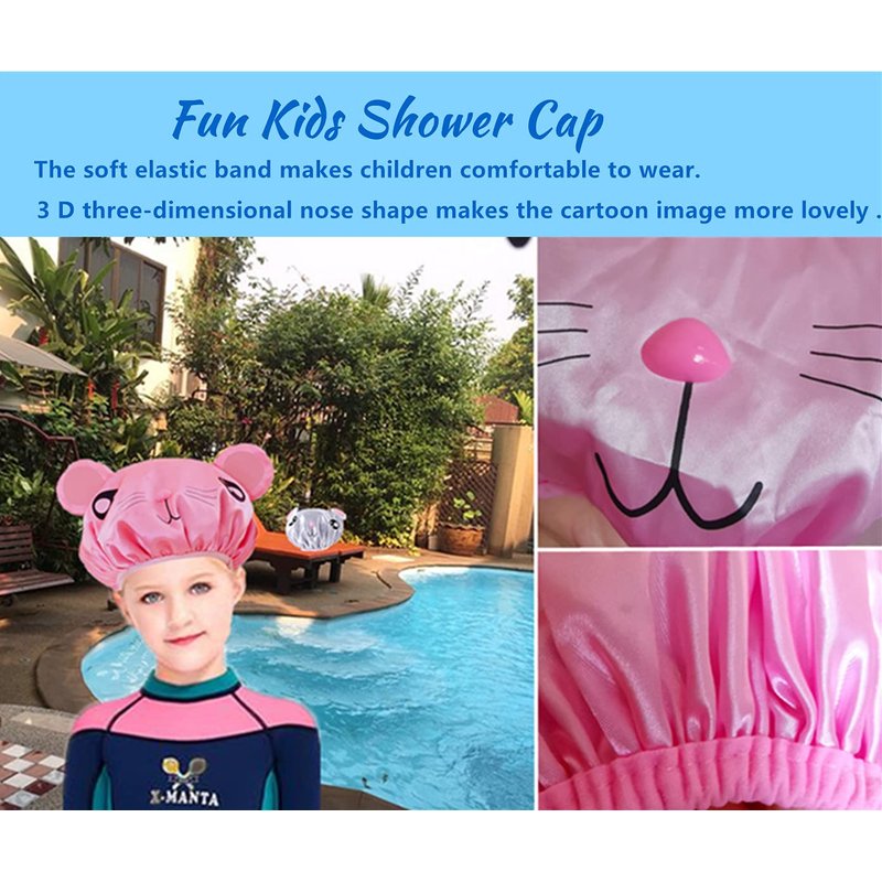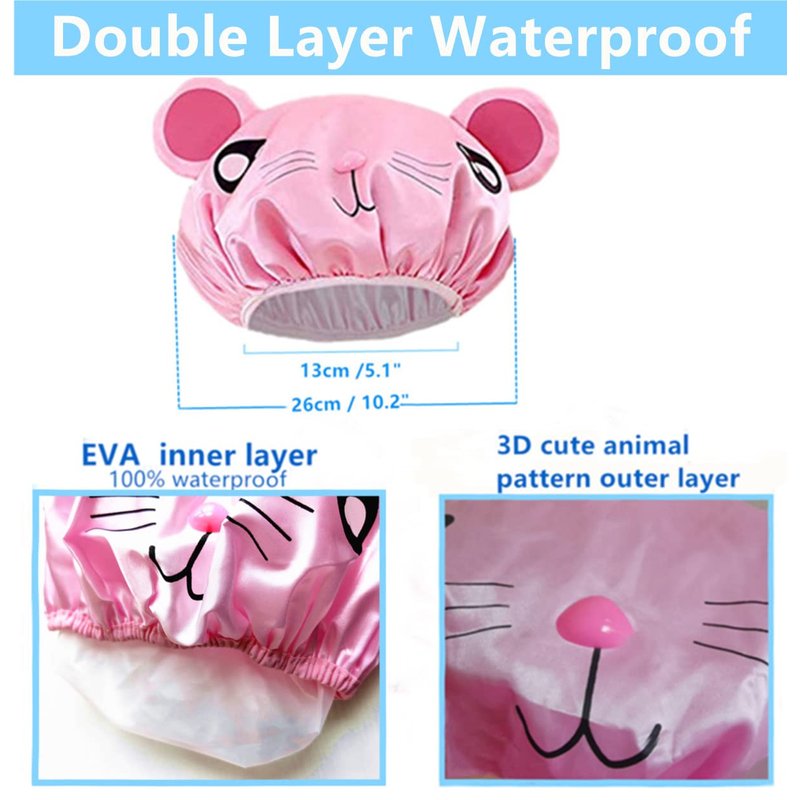 Double layer design, soft cartoon printing fabric outer layer, high quality waterproof lining. You will receive 2 lovely bath caps,Elastic diameter: 26cm / 10.24 in Keep your child's hair dry when bathing / showering or playing in the water. Fun Children's gifts-Can be used as an interesting headdress for Pajama Party, story show or other special parties. Reusable Bath Hat-Take it with you to keep your child's hair dry anytime and anywhere