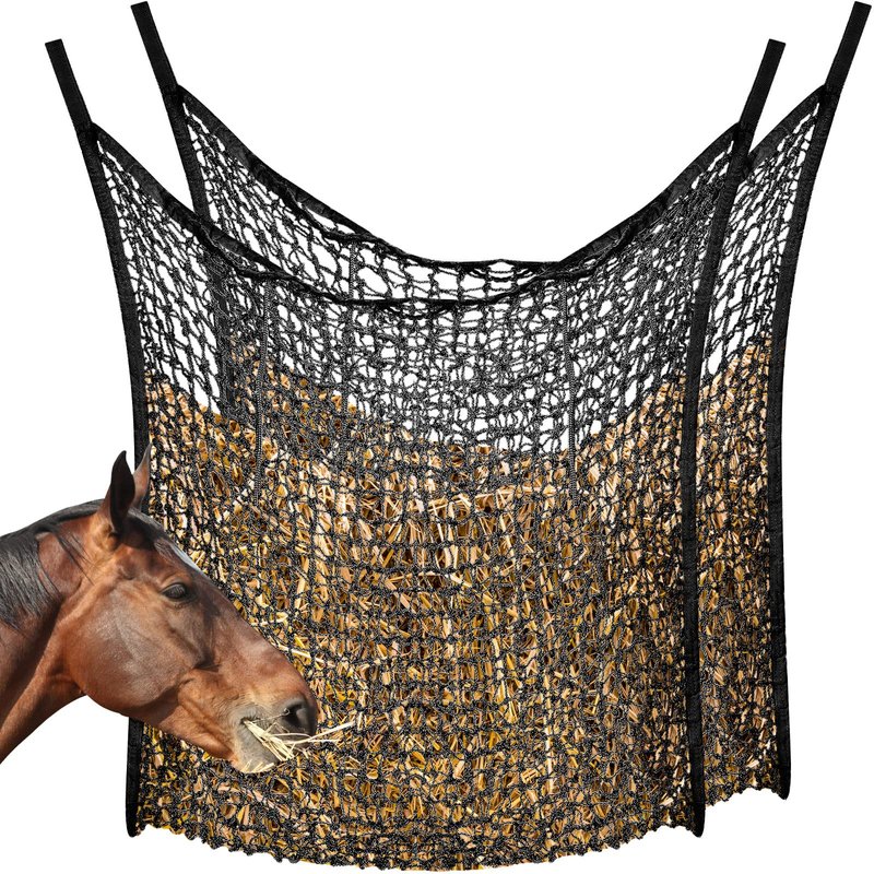 - Easy to Fill: mesh hay net is easy to open and fill, with loops on both sides for easy suspension and disassembly, you can easily connect the horse hay feeder to the stall, trailer, wall, fence and more
