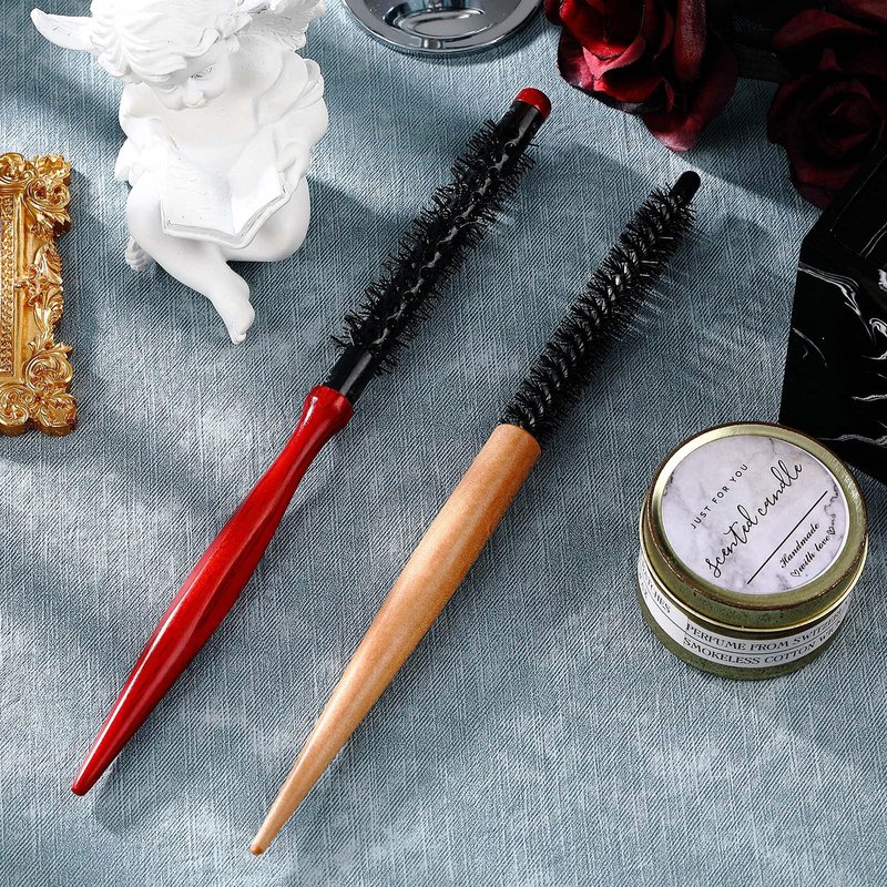 2 Pcs Small Round Hair Brush Mini Round Wood Brush Roller Quiff Hair Combs Nylon Bristles Hair Brushes Salon Hairdressing Brushes for Blow Drying Curly Hair Styling Bangs Lifting Beard Care, 2 Styles