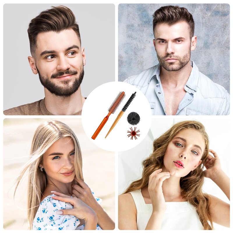 2 PCS Small Round Hair Brush,Mini Curl Brush Portable Circle Brush Roller Quiff Hair Combs Nylon Bristles Hair Styling Brush for Thin Hair, Short Hair, Bangs, Blow Drying, Lifting,Beard Brush for Men