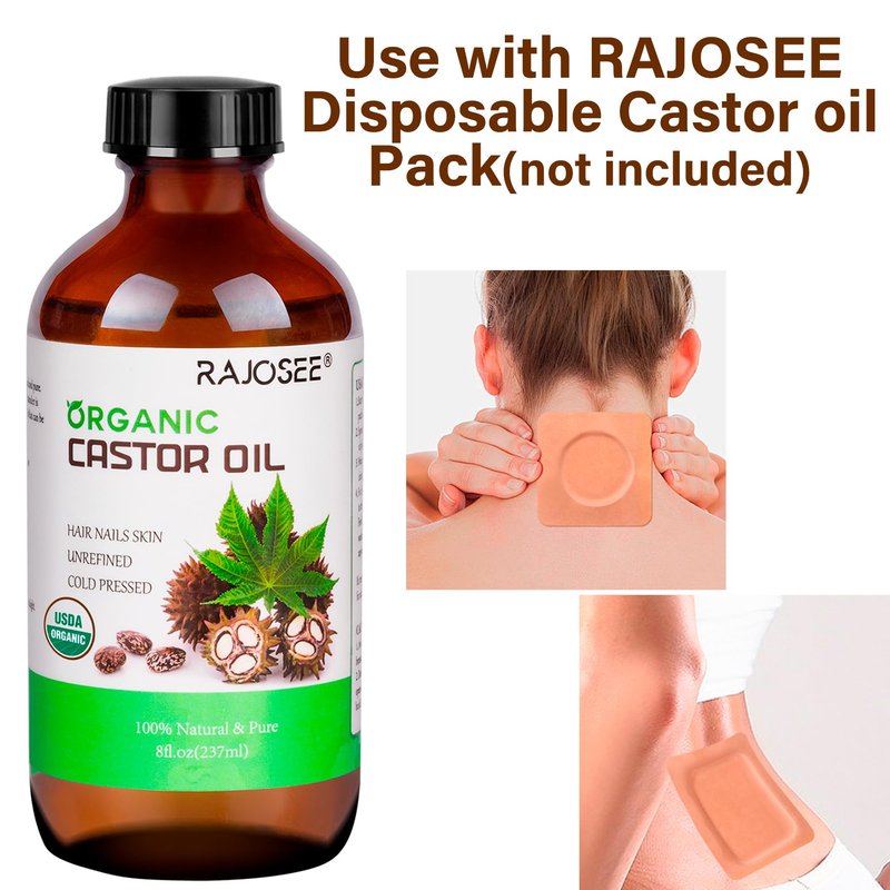 - Sore Muscle Massage Oil: A spa experience you can enjoy at home — no need to spend a lot of money on salon visits. RAJOSEE castor oil are perfect for bathing, massages, gua sha, hair care, and overall body care. You also can use with RAJOSEE self-adhesive castor oil pack to help you get through your day with discreet
